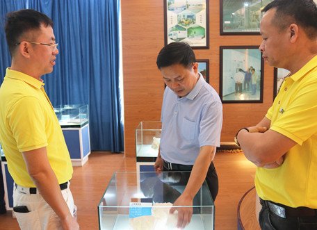 在公司展廳,陸元鴻介紹說:賀州市擁有中南地區(qū)最大的白色大理石礦藏,重質碳酸鈣粉的總量約占全國三分之一,有“中國重鈣之都”美譽。賀州白大理石又叫廣西白,白度高于全國平均水平,是很好的重質碳酸鈣粉體原料。最好的大理石用作石雕工藝和天然板材廠的原料,我們生產用的是邊角料,是廢棄物的綜合利用??坡」境闪⒂?997年,是一家集礦山開采、超細粉體加工及新材料研發(fā)為一體的民營高新技術企業(yè)。目前,我們擁有球磨、立磨、環(huán)輥磨及連續(xù)式表面處理設備等70多條粉體生產線,產能達200萬噸以上。產品廣泛用于人造石、塑料、涂料、橡膠、造紙、油墨、建材和日用化工等行業(yè)。公司被認定為 “國家高新技術企業(yè)”、“國家知識產權優(yōu)勢企業(yè)”、“廣西重質碳酸鈣工程技術研究中心”和“廣西企業(yè)技術中心”。獲得了“中國碳酸鈣行業(yè)重鈣十強”、“全國五一勞動獎狀”、“廣西名牌產品”、“廣西著名商標”、“廣西優(yōu)秀新產品獎”等榮譽。2009年至今,公司連年獲評賀州市平桂區(qū)企業(yè)納稅大戶。參與了國家標準、行業(yè)標準和團體標準的制訂。2020年7月,在廣西民營企業(yè)制造業(yè)100強中排84位。