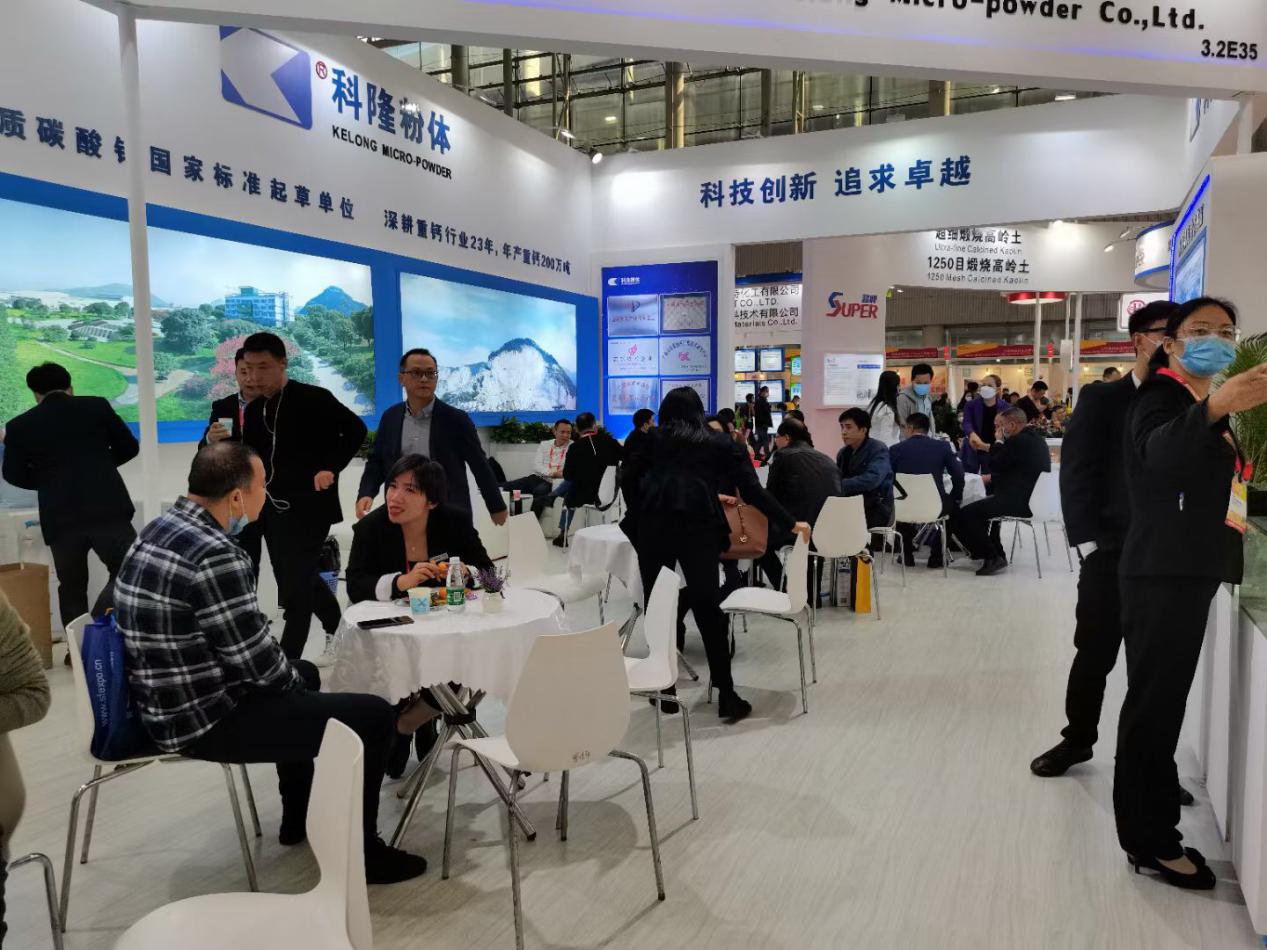 在本屆展會上,廣西賀州市科隆粉體有限公司以創(chuàng)新、科技企業(yè)盛裝亮相。公司總經(jīng)理李奇洪率隊參加了此次展會,對適用于涂料行業(yè)的碳酸鈣系列產(chǎn)品進行了展示和推廣??坡》垠w利用此次展會廣交朋友,得到了廣大新老客戶的光顧和認可,展位上人流絡(luò)繹不絕,展示了科隆營銷團隊的強大實力。