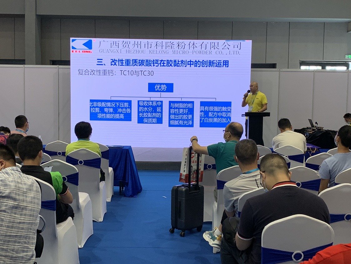 科隆公司營銷總監(jiān)劉嘉偉洞悉目前膠粘劑行業(yè)市場現(xiàn)狀,在展會技術(shù)論壇上針對改性重質(zhì)碳酸鈣在膠粘劑中的創(chuàng)新運(yùn)用進(jìn)行了演講和交流,得到了與會人員的廣泛關(guān)注。