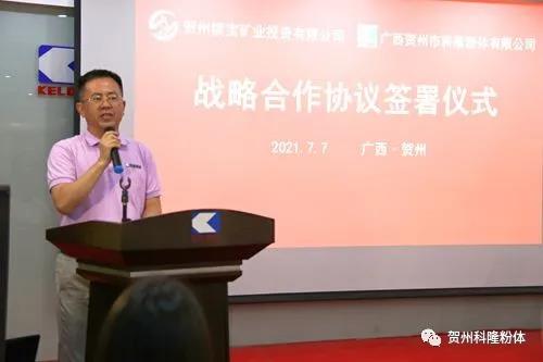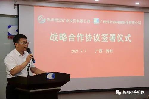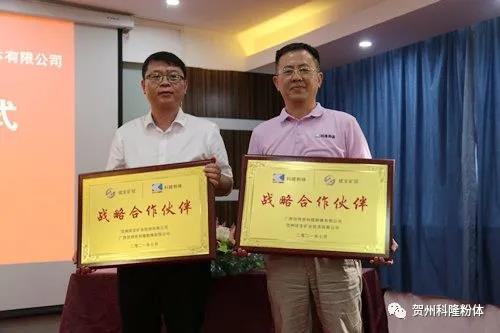 7月7日,廣西賀州市科隆粉體有限公司與賀州續(xù)寶礦業(yè)投資有限公司戰(zhàn)略合作簽約儀式在科隆公司隆重舉行,科隆公司總經(jīng)理李奇洪與續(xù)寶公司總經(jīng)理蔡曉波共同簽署了戰(zhàn)略合作框架協(xié)議書。